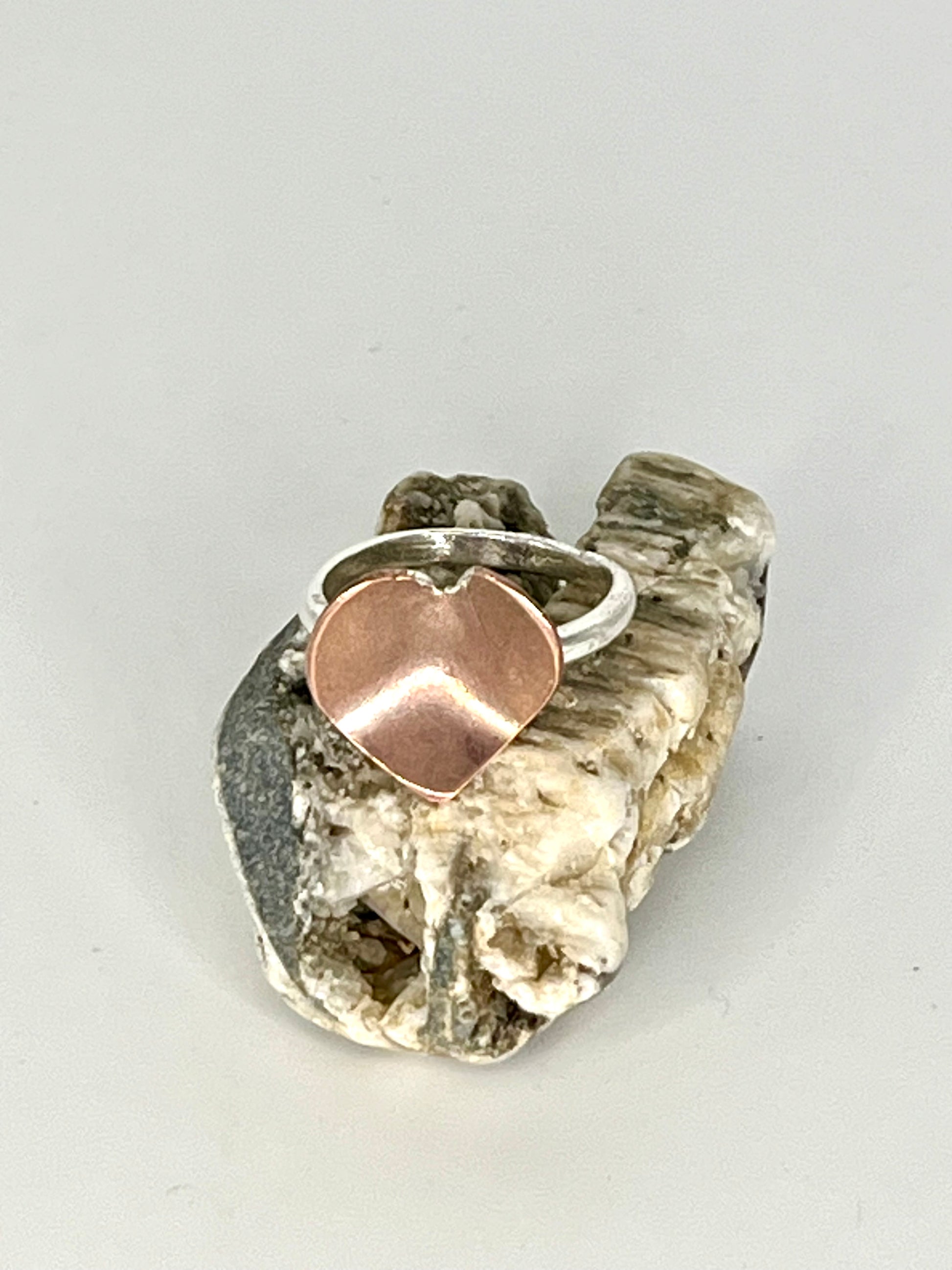 Cute gently domed heart sitting on a stacking band.