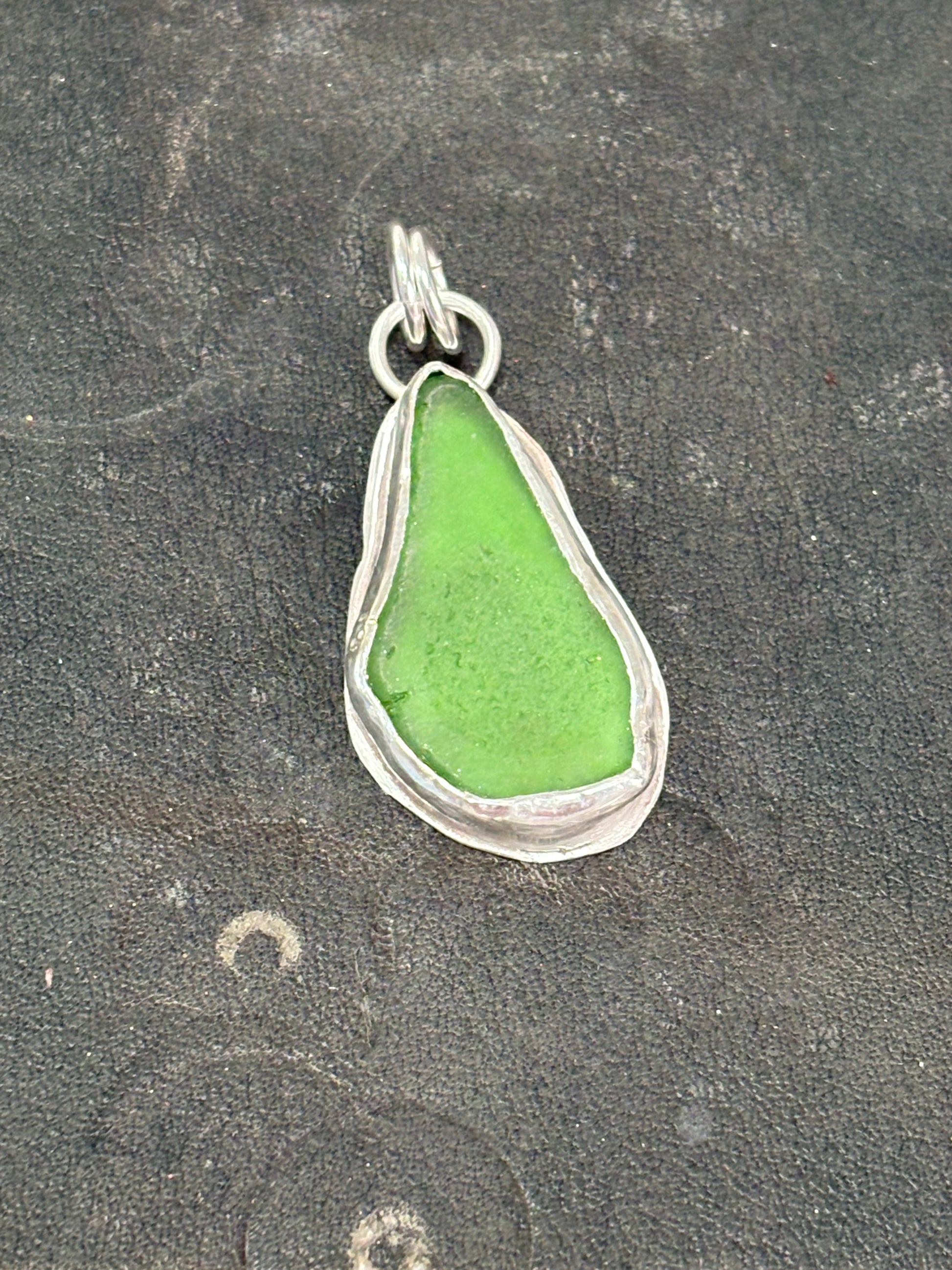 You will set a piece of seaglass in silver and create a loop or bail to hang it from for a pendant, for a ring you will set your seaglass in a bezel setting on a ring you have made. In the case of the pendant I will have a selection of 16 and 18” silver chains for you to choose from so you leave with a complete necklace.
