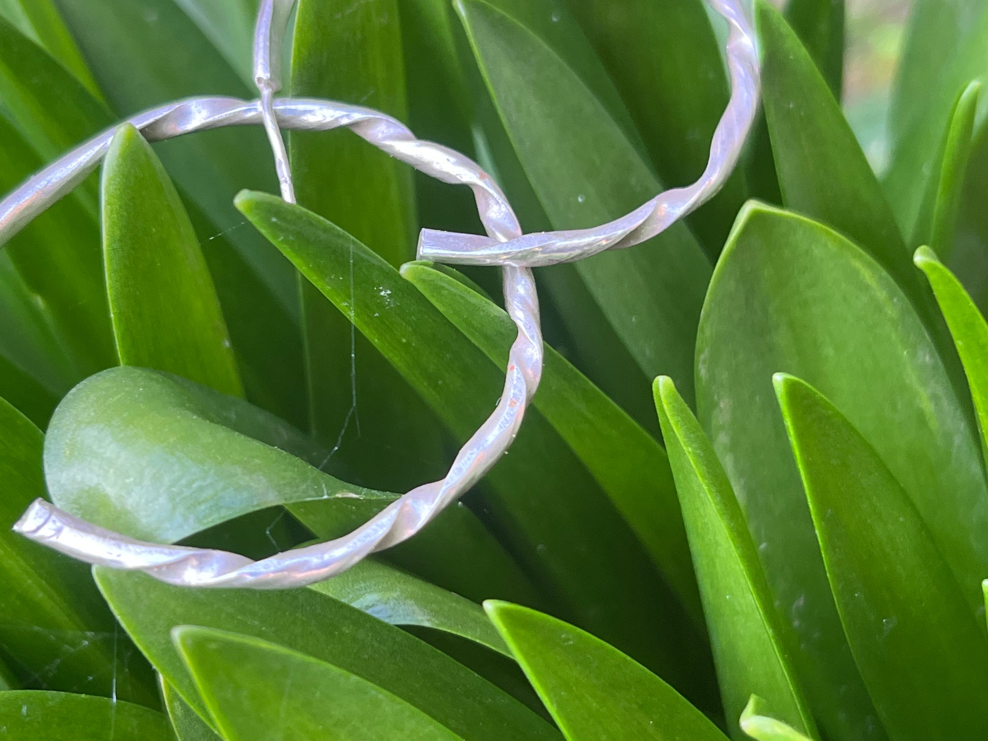 Eye catching handmade irregular twisted sterling silver hoop earrings.
